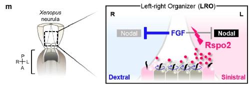 R-Spondin 2 governs Xenopus left-right body axis formation by establishing an FGF signaling gradient.