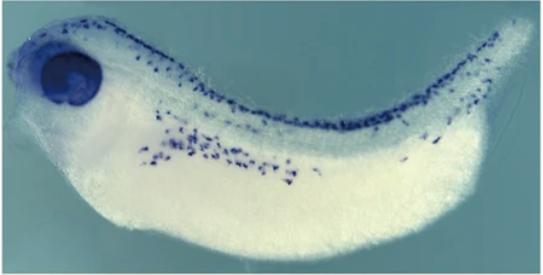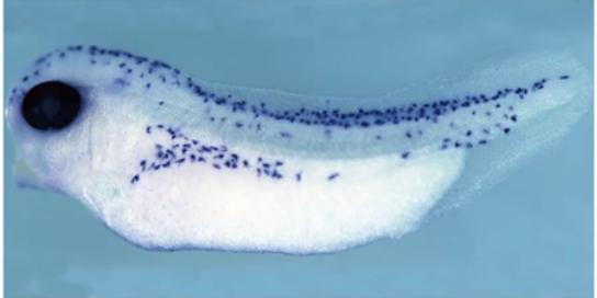 Fig. 10: Allogeneic transplantations of melanomas were conducted in mitf−/−/prkdc−/−/il2rg−/− Xenopus tropicalis, resulting in the observed migrations of transplanted melanomas in the recipient animals.