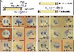 Figure 2. Knockdown of SerpinE2 mimics the phenotype of neural excision and inhibits migration of neural crest cells. (A) Scheme of extirpation. Dorsal view of Xenopus embryo at stage 17, from which NC tissue was removed on both sides. (B, C) Tadpole embryo at stage 40 following NC excision (B) and sibling control (C). Note the small head, absence of dorsal fin tissue (open arrowheads), and the reduced number of melanocytes (arrow) resulting from NC extirpation in A. (D) Unaffected tadpole after microinjection with control-MO into all animal blastomeres at the eight-cell stage. Highlighted are the pigmented melanocytes (arrow) and the intact dorsal fin (filled arrowheads). (E) SerpinE2-MO causes a reduction of head tissue, dorsal fin structures (open arrowheads), and melanocytes (arrow). (F) Co-injection of SerpinE2-MO and 2 ng non-targeted Flag-SerpinE2 mRNA restores a normal phenotype. (G) Scheme for microinjections in HT. MOs and mRNAs were injected together with 100 pg nlacZ mRNA as lineage tracer (red nuclei) into one dorsal animal blastomere of embryos at the eight-cell stage. The injected side is marked with a star. (HK) Anterior view of neurula embryos at stage 18. Neither control-MO nor SerpinE2-MO affect Twist and Sox9 expression in NC cells in the head and trunk (arrows) . (LQ) SerpinE2-MO inhibits the epithelial-mesenchymal transition (EMT) of Foxd3+ and Snail2+ NC cells (open arrowheads) at stage 20, whereas the control-MO and SerpinE2-5MM-MO have no effect (filled arrowheads). (RT) Lateral view of stage 26 embryos. A single injection of control-MO does not affect the migration of Snail1+ NC cells (filled arrowhead). SerpinE2-MO leads to a migration defect on the injected side (open arrowhead). 333 pg Flag-SerpinE2 mRNA rescues NC migration in the SerpinE2-morphant embryo. br, branchial crest segment; ey, eye primordium; hy, hyoid crest segment; ma, mandibular crest segment; MO, morpholino oligonucleotide; NC, neural crest; ot, otic vesicle. Doses of injected MOs per embryo were 40 ng (DF) and 10 ng (HT). Indicated phenotypes were shown in B, 10/11; D, 89/90; E, 64/83; F, 122/132; H, 29/29; I, 24/26; J, 7/7; K, 10/11; L, 9/9; M, 7/7; N, 7/9; O, 7/8; P, 8/9; Q, 9/11; R, 10/10; S, 13/15; T, 9/9. Scale bars, 0.5 mm. |