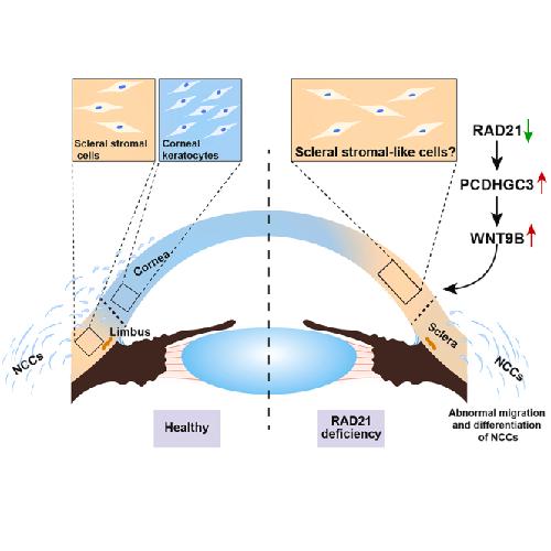 RAD21 deficiency drives corneal to scleral differentiation fate switching via upregulating WNT9B.