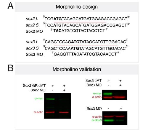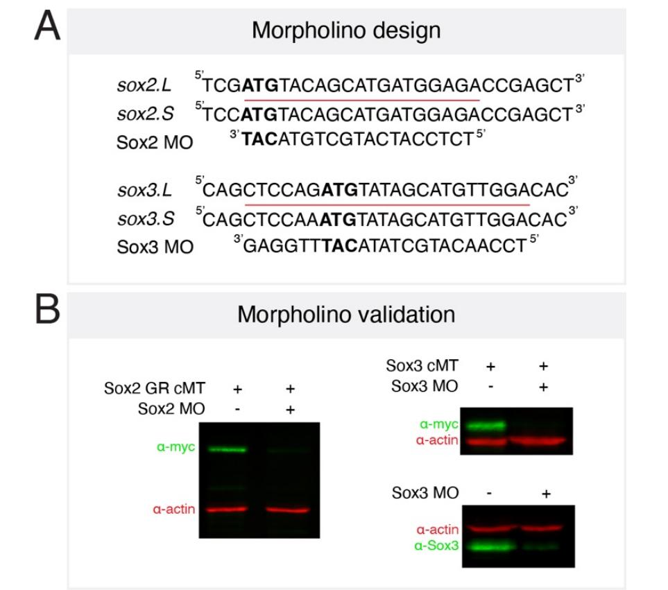 Fig. S3. Sox2 and Sox3 morpholino validation. (A) Schematic showing morpholino