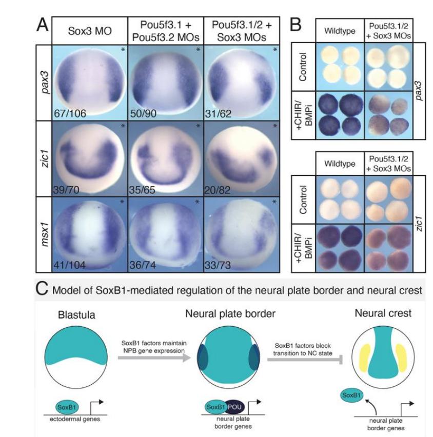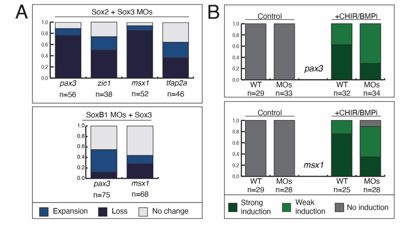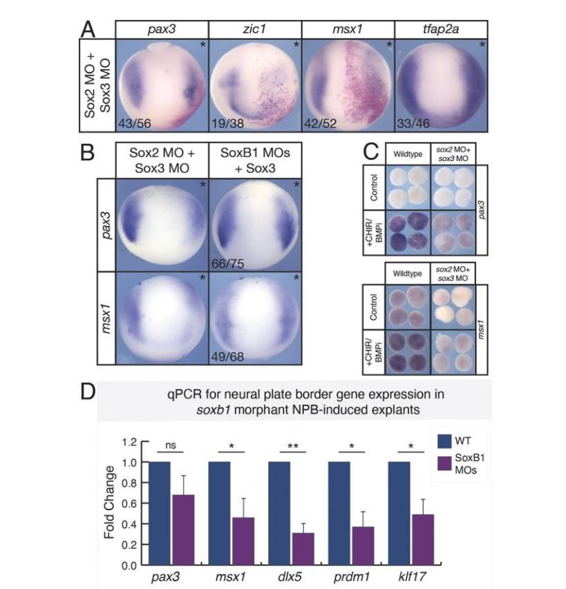 Fig. 3. SoxB1 expression blocks the transition from neural plate border to neural