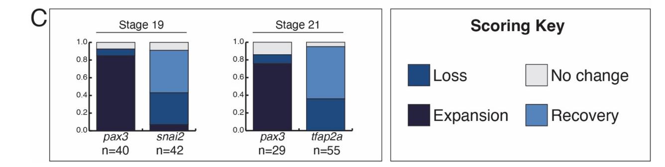 region with loss of foxd3 expression and expanded pax3 expression. (E) pax3 and snai2