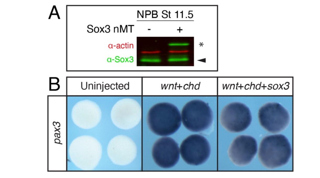 deonotes myc-tagged sox3. (B) In situ hybridization for pax3 in neural plate borderinduced explants with and without myc-tagged sox3.