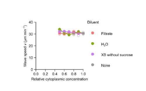 Speeds of mitotic trigger waves at different cytoplasmic concentrations. The cycling extracts