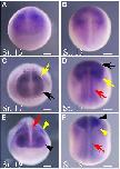 Fig. 2. In situ hybridisation analysis of thg1l during segmentation and gastrulation.