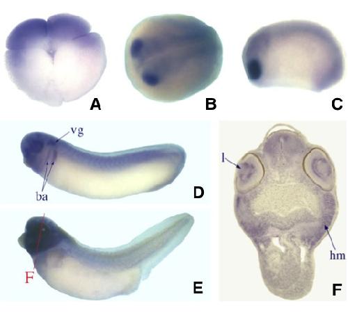 Temporal and spatial expression patterns of FoxN genes in Xenopus laevis embryos.