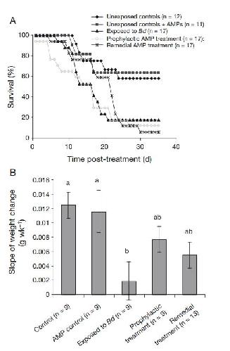 to Batrachochytrium dendrobatidis (Bd) or after experimental infection. Peptides were harvested non-destructively