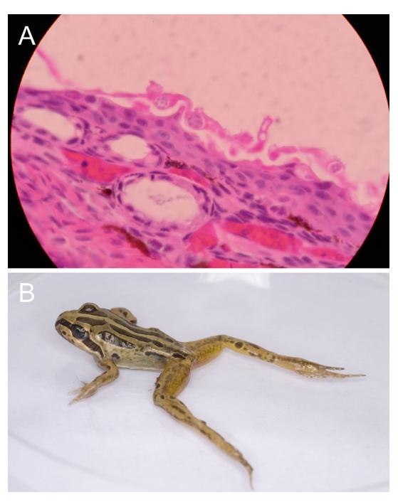Bd zoosporangia. (B) A newly metamorphosed L. peronii