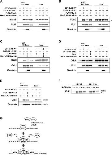 Fig. 4. Cdt1-S1S2 Interacts with Pre-RC Components, Geminin, and DNA