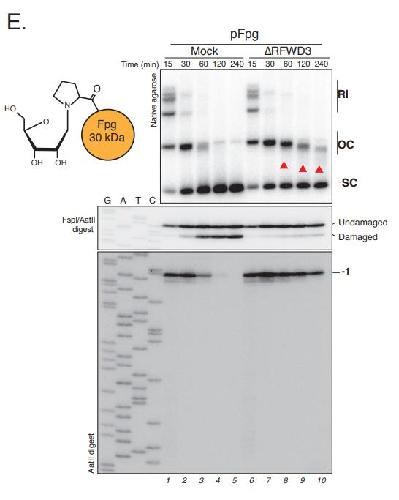 containing a site-specific Fpg crosslink (depicted in the left scheme) was replicated in mock- or