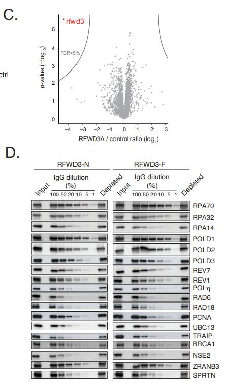 permutation-based FDR-adjusted q-value of <0.05. (D) Extracts depleted with either RFWD3-N or