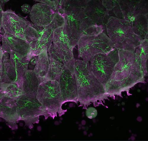 Movie 1.Timelapse movie of single DMZ explant on fibronectin. Actin (magenta) and Keratin (green) were labeled by injection of mRNA transcript encoding LifeAct-RFP (actin) and XCK-GFP (cytokeratin filaments). Confocal Z-stacks were collected at 2 min intervals (15 frames).