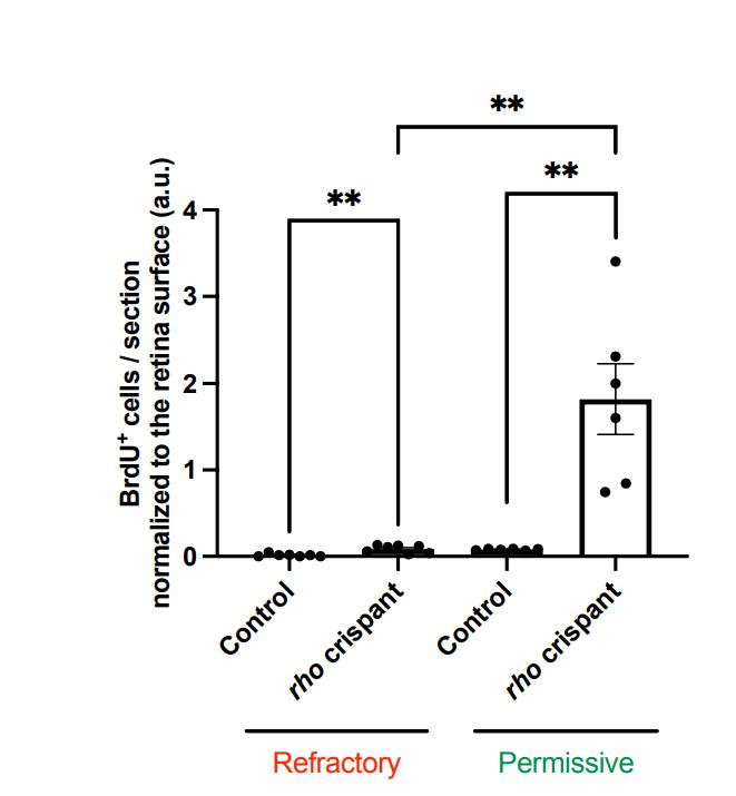 Quantification of BrdU-positive cells (3-day exposure) in retinal sections of young (refractory) or old