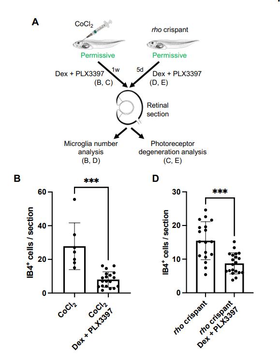 crispant (D, E) tadpoles were soaked in PLX3397 plus Dex solution for 5 days (5d) or 1 week (1w) as
