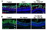 of retinal sections labeled for Opsins (cones) and/or Rhodopsin (rods). Nuclei are counterstained