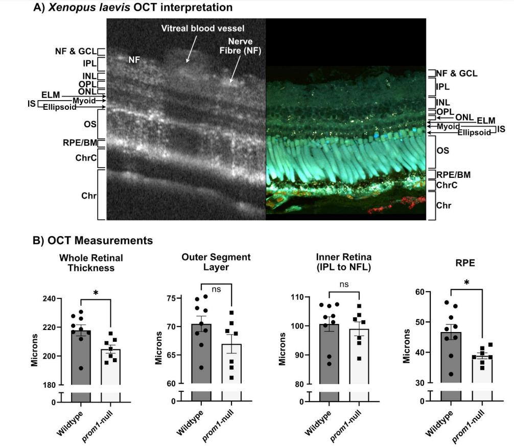 Fig. S2. A) OCT interpretation of wildtype Xenopus laevis retina. B) Retinal layer
