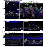 honeycomb-like pattern (A, cone opsin, merge). Large deposits containing multiple