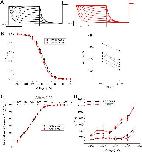 Figure 8. Norquetiapine (NQTP) inhibition of HCN1 channels does not depend on the CNBD. (A) Representative traces from a paired activation experiment (control in black) following the addition of 30 µM NQTP (red traces) to oocytes expressing HCN1ΔCNBD. (B) Current-voltage (I-V) relationship in presence of NQTP normalized to maximal current (Icontrol (-130 mV)). (n = 6; P < 0.05). (C) NQTP induces a hyperpolarizing shift in the steady-state voltage-dependence of activation (P < 0.05).