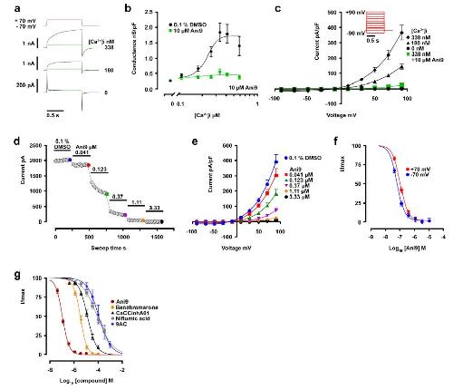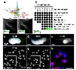 Fig. 1X. tropicalis tmem16a is expressed in SSCs in the tadpoleskin. (a–b) In a developmental time series of single-cell transcriptomes in X. tropicalis embryos from NF8-NF22, an SSC lineage (highlighted in red) was identified (a, upper). An expanded view (black box) examining gene-specific expression in this SSC lineage reveals expression of met (a, lower left; marking this SSC lineage) and of tmem16a (a, lower right). Within epidermal lineages, tmem16a expression is present in the SSC lineage from NF18 but absent from other epidermal lineages from differentiation to NF22 (b). Each circle represents a developmental stage in a specific epidermal lineage. Scale bars: colour intensity represents normalised expression level from undetectable (0) to maximum expression (1) within the entire dataset. (c–e) Chromogenic in situ hybridisation for tmem16a at stages NF22 (c), NF36 (d) and NF43 (e) reveals punctate expression throughout the skin, matching typical SSC distribution. (f–h) Fluorescent in situ hybridisation for tmem16a (f) and dual staining with the SSC vesicle marker PNA (g) confirms that tmem16a is expressed in SSCs (merged and expanded from white box in h).