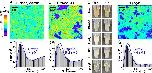 Figure S5. Diffusion of the negatively charged BCA in RNase-treated extract. (a,b) SMLM images of Cy3B-labeled HEWL (a) and CF647-labeled BCA (b) in an RNase-treated extract sample. Vertical stripe patterns are attributed to local lensing effects from the high refractive indices of the aggregates under our inclined illumination scheme (7). (c) SMdM diffusivity map of the CF647-labeled BCA. Arrows point to aggregates, where diffusivity reduction was accompanied by local increases and decreases in the abundances of HEWL and BCA, respectively. These results may be interpreted as that as the RNase-released positively charged proteins interact with the negatively charged cytoplasm environment, the resultant aggregates are overwhelmed by the latter on the surface. Positively and negatively charged tracer proteins are thus respectively attracted to and repelled by the aggregates, with the former further likely participating in the aggregate cores.