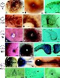 Figure 2. The immunostaining against Bra of Colostethus machalilla embryos. Stages of development on the left, and the age of embryos are according to ávila et al. (unpublished observations). The external morphology of C. machalilla embryos is comparable to X. laevis until stage 13 (Nieuwkoop and Faber, [1997]). The diagrams on the left show the Bra-positive regions in purple. The embryos were immunostained in whole-mount with anti-Bra. The dark purple spots correspond to Bra-positive nuclei, whereas the brown color corresponds to the natural pigment that remained after bleaching. Embryos could not be bleached totally because elimination of the pigment also removed the Bra alkaline phosphatase signal. All embryos were cleared in bb/ba to eliminate the opacity of the yolk, except for the embryos shown in (G) and (J). Embryos were photographed in brightfield (A,B,D,E,G,H,J,K,M-P). Embryo sections were viewed with differential interference contrast (C,F,I,L,Q,R). The sections in C,F,L,R were 100 mu m thick, whereas section I was 50 mu m thick, and P,Q were 7 mu m thick. The animal pole is oriented toward the upper left in A and toward the top in C. Anterior is toward the top in D,E,G,H,J,K and toward the right in M-O. The external surface is toward the right in F,I and toward the top in L,P-R. A-C: the blastula (stage 9; age, 1.1 days). A: Animal view of a cleared blastula that was partially bleached. The animal pole (ap) was Bra-negative. Bra-positive nuclei extend to the marginal zone (arrow). B: Vegetal view of the embryo shown in A. The vegetal pole (vp) did not contain Bra-positive nuclei, whereas the surrounding cells were Bra-positive. The cell outlines and the low density of Bra-positive nuclei in this region showed the large size of vegetal blastomeres. C: Parasagittal section of a blastula. Bra-positive nuclei were detected in surface cells. The animal pole (ap) was Bra-negative. The two faintly positive nuclei (arrow) were located on the embryonic surface but were positioned in a different focal plane. D-F: The early gastrula (stages 10-11). The drawing represents a stage 11 embryo. D: Surface view of the dorsal blastopore lip of a stage 10 embryo (age, 1.4 days). The area of the dorsal blastopore lip (b) contained nuclei that were strongly Bra-positive. The Bra-positive signal of the marginal zone decreased in comparison with the blastula (stage 9). E: The blastopore region of a stage 11 embryo (age, 1.9 days). Brachyury-positive nuclei were observedonly near the blastopore lips. The yolk plug and the marginal zone were Bra-negative. F: Parasagittal section through the blastopore of a late stage 11 embryo, showing the ventral lip. The Bra-positive nuclei were superficial (arrow). Bottle cells (bc) and those of the yolk plug were Bra-negative. G-I: The midgastrula (stage 12; age, 3 days). G: Surface view of the blastopore in an uncleared embryo. Some nuclei of the blastopore lips were Bra-positive. The yolk plug (yp) is Bra-negative. H: The same embryo shown in G after clearing. The Bra-positive nuclei formed an internal ring around the blastopore. I: Section through the blastopore of an advanced stage 12 embryo. Bra-positive nuclei were found in a deep layer (arrow), in contrast to stage 11 (F). The yolk plug (yp) was Bra-negative. J-L: The small blastopore stage (stage 12.5; age, 3.5 days). J: Surface view of the blastopore in an uncleared embryo. The yolk plug has been retracted, but the blastopore was still open. Few Bra-positive nuclei were observed in the surface near the blastopore (arrow), in comparison to stage 12 (G). K: The same embryo shown in J after clearing. The Bra-positive nuclei formed an internal ring around the blastopore as in H. L: Parasagittal section through the blastopore of a slightly earlier embryo. The small yolk plug was not retracted. The internal nuclei of the blastopore lips were Bra-positive. M-O: The slit blastopore stage and the tail bud (stages 13 and 17). M: The slit blastopore stage (early stage 13 embryo; age 4.1 days). After closure of the blastopore, the notochord began to elongate. The nascent notochord (n) and the tail bud (tb) were Bra-positive. N,O: A late stage 13 (age, 4.4 days) embryo in N and a tail bud stage embryo (stage 17; age, 8 days) in O. In both embryos, Bra-positive nuclei were found in the notochord (n) and in the tail bud (tb). P-R: Cross-sections through the notochord of a late stage 13 embryo and a tail bud stage embryo (stage 17). The sections in P,Q were from an embryo equivalent to N, and the section in R was from an embryo equivalent to O. The sections represent the posterior (P) and anterior (Q) regions of the notochord of a late stage 13 embryo. P: Cross-section through the posterior region of the notochord (n) of a late stage 13 embryo. The notochord lined the roof of the original cavity of the gastrula, the gastrocoel (g). Q: Cross-section through the anterior region of the notochord of the same late stage 13 embryo in P. The notochord n was internalized and covered with endodermal cells (e). R: Cross-section through the midregion of the notochord of a tail bud embryo (stage 17). The notochord (n) is located under the neural tube and above the endodermal roof of the archenteron; this cavity was totally covered with endoderm. Scale bars = 200 mu m in G,J,M, 100 mu m in A,B,D,E,H,I,K,L,N-P, 50 mu m in C,F,Q,R.
