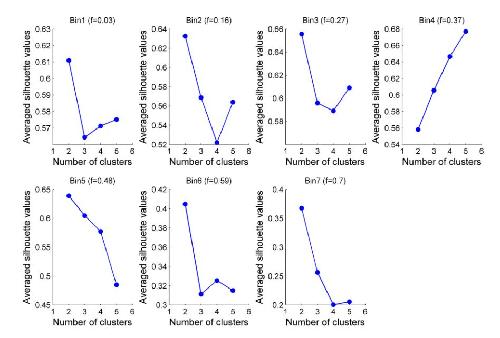 fraction were grouped into two to five clusters and the average silhouette value was calculated for each