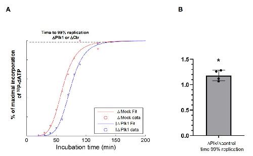 Supplementary Figure S11: Increase of time period to reach near 100 % replication after Plk1