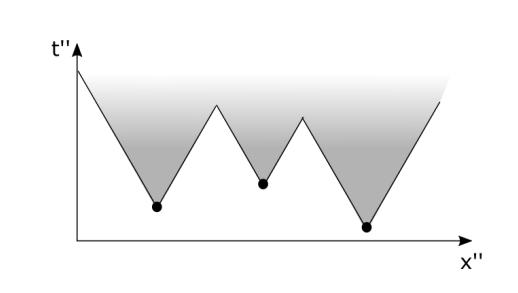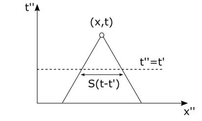 Fig. 2. Representation of the one dimensional causal cone for the point