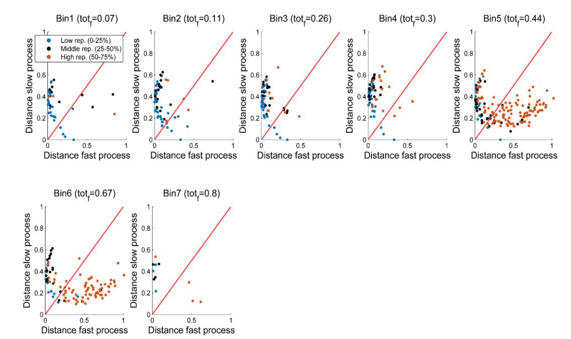 Supplementary Figure S9: Comparative partitions of the replication process between slow and fast