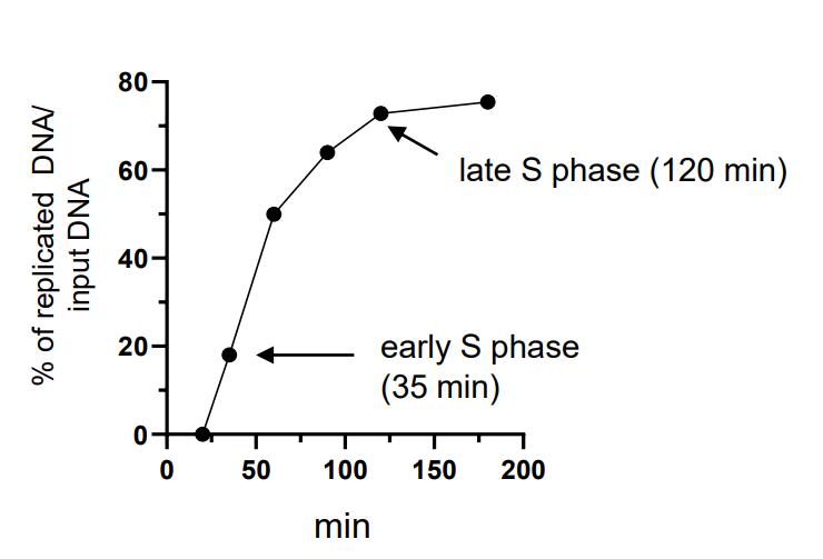 and quantified as % of DNA synthesized per input DNA. Time points for the two equivalent incubation times (35,