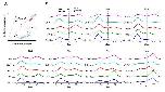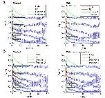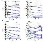 (blue curve, with standard deviation) with fit (red curve), modeled by either considering two processes or (C) a