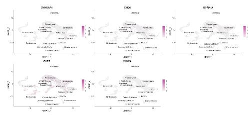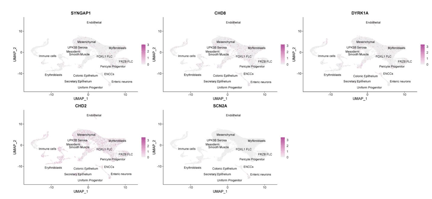 to Figure 1. UMAPs of SYNGAP1, CHD8, SCN2A, CHD2, and DYRK1A expression.
