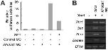Fig. 4. XPofut1 is involved in Xnr1 signal transduction. (A) A3-Luc reporter plasmid (50pg/embryo) was injected into animal regions at 2-cell stage with indicated combinations of control random or XPofut1 MO (5nmole/embryo) and Xnr1 mRNA (125pg/embryo). Animal caps were explanted at stage 8.5, cultured until stage 9.5, and harvested to analyze luciferase activities. (B) Indicated combinations of control random (cMO) or XPofut1 MO (5nmole/embryo) and Xnr1 mRNA (125pg/embryo) were injected into animal regions of 2-cell-stage embryos. Animal caps were explanted at stage 8.5, cultured until stage 9.5, and harvested for RT-PCR analysis. EF1 is used as a loading control.