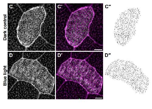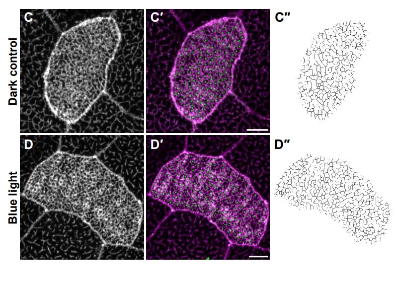 controls (C). (C′-D′) Actin labeled by Phalloidin is depicted in magenta, RFPcentrin in green. Scale bars 5µm. (C″-D″) Skeletonize