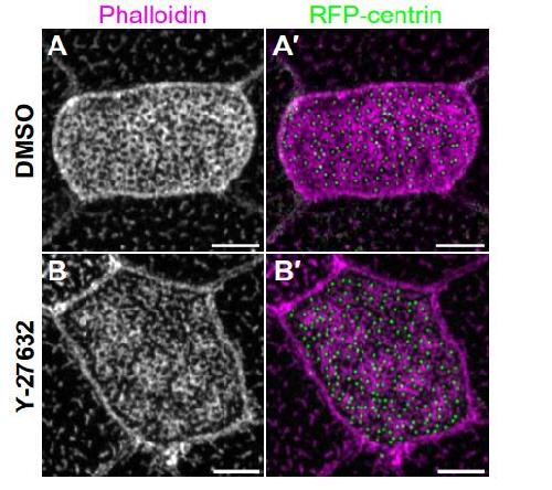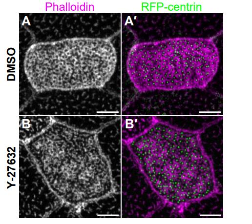 MSO or (B) Y-27632 from stage 19-30. (D′-E′) show actin labeled by phalloidin in