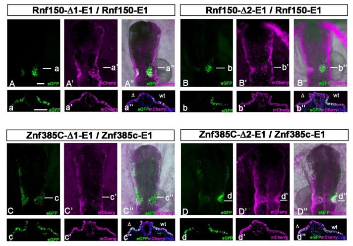 of the white line. C-C’’, D-D’’: Deletion of Six1 motif 1 in the ZNF385c associated enhancer