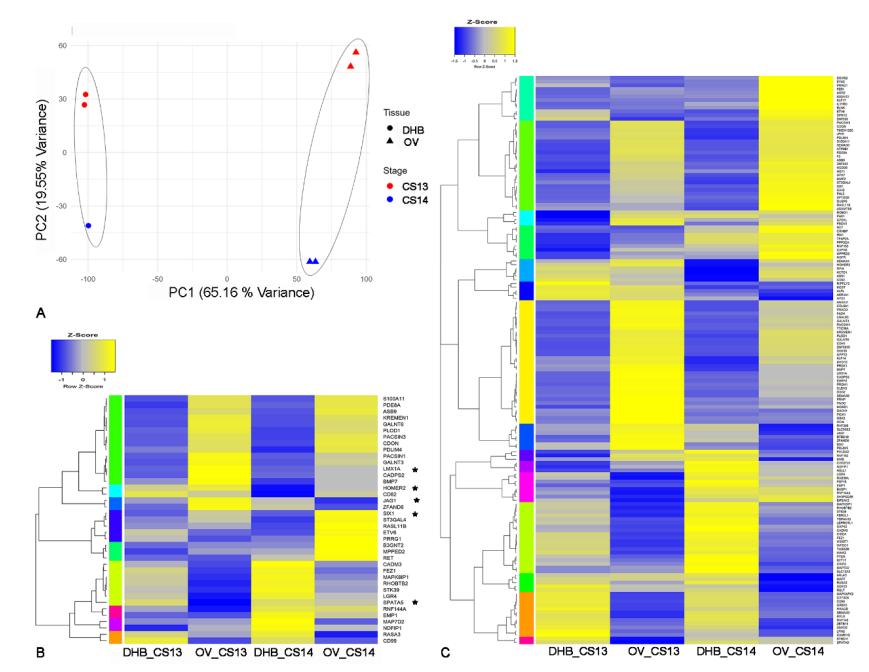 Fig. S5. RNAseq data analysis from human otic vesicles and dorsal hindbrain. A. PCA analysis of otic