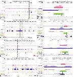 browser plots of ATACseq (pink) and ChIPseq for H3K27ac (blue) and H3K27me3 (brown) surrounding