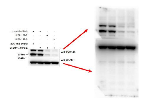 Supplemental Figure 2D and 2E: Full images of LSM14B Western Blots