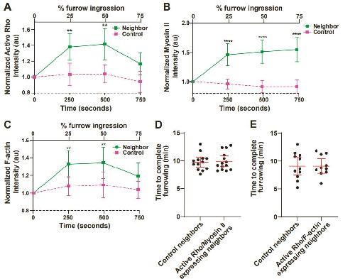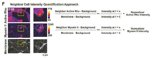 used to quantify Active Rho and F-actin intensities in neighbor cells in Figure 1F. Control cells are