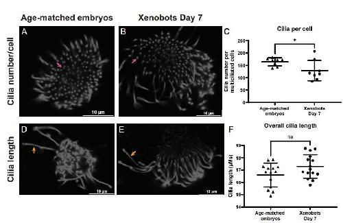 Supplementary Figure 5: Xenobots have overlapping cilia characteristics with age-matched