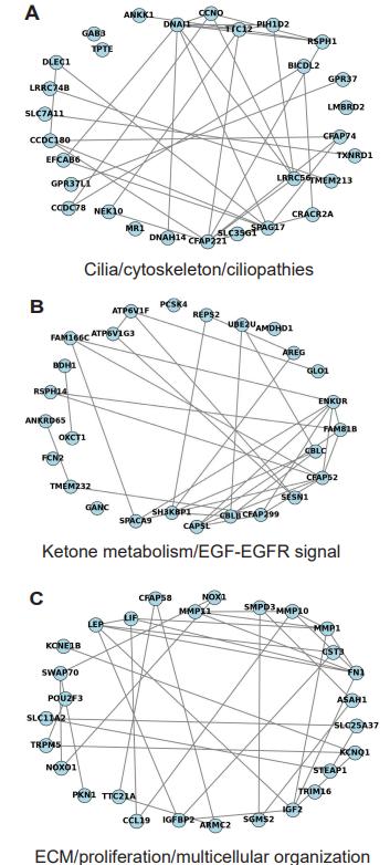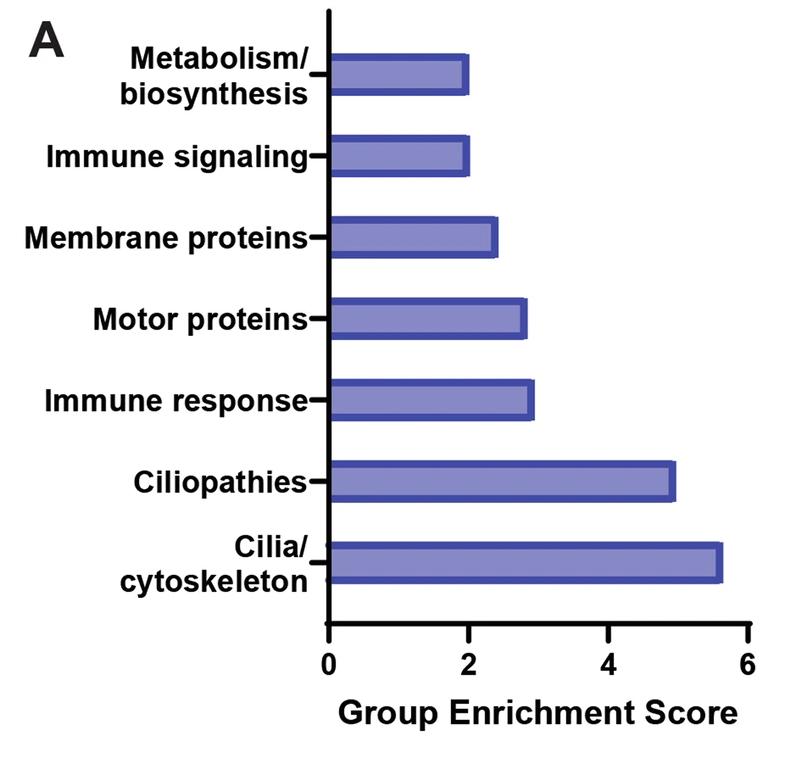 analysis identified 10 clusters (Supplemental Dataset 6) including clusters for cilia and