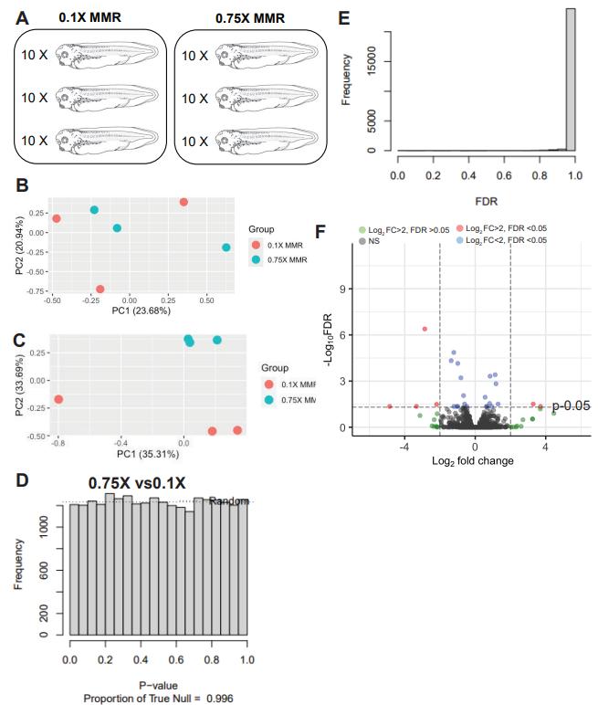 Xenopus embryos raised in 0.1X MMR and 0.75X MMR showing no clustering. (C) Principal