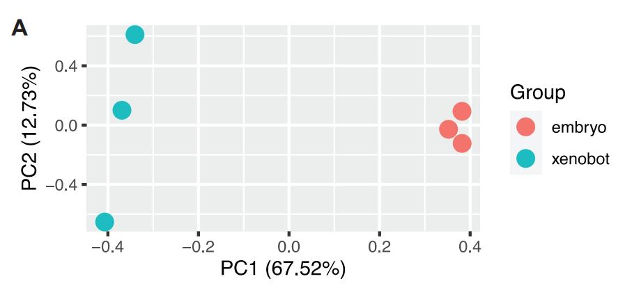 surrogate variable adjusted data for Xenobots and age-matched stage 35/36 Xenopus embryos