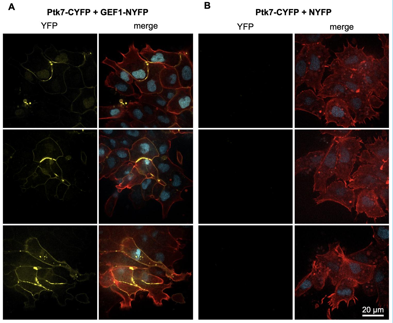 Fig. S4. PTK7-CYFP complements with GEF1-NYFP, but not NYFP alone.