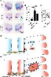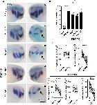 Fig. 5 Activation of RhoA rescues the Ptk7 morphant phenotype. (A-C) Embryos were injected with 5 ng control MO or 5 ng Ptk7 MO alone or together with 10 pg caRac1, caRhoA or caCdc42 DNA in combination with 50 pg lacZ RNA as a lineage tracer in one blastomere at the eight-cell stage. (A) NC cell migration was analyzed at stage 26 by twist in situ hybridization. Co-injection of caRhoA rescued NC migration in Ptk7 morphants. The injected side is marked with an asterisk. Arrows indicate NC cell migration defects. Scale bar: 250 µm. (B) Graph showing the percentage of embryos with NC migration defects of at least three independent experiments. The total number of embryos is indicated for each column. Data are mean±s.e.m. ****P<0.0001, **P<0.01; ns, not significant (one-way ANOVA). (C) Graphs presenting the measured area of twist expression of 20 randomly chosen embryos per condition. Lower panels show the results of embryos co-injected with Ptk7 MO and the respective rescue constructs. The twist expression of the uninjected side (control) is compared to the injected side of the embryo. ****P<0.0001; ns, not significant (paired t-test).