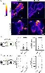 NC explants were injected with 100 pg Ptk7-CYFP RNA in combination with 100 pg GEF1-NYFP RNA or 100 pg NYFP RNA together with 200 pg H2B-CFP RNA and 300 pg lifeact-RFP RNA in one blastomere at the two-cell stage. For each combination three representative images are shown. YFP signal indicates an interaction of Ptk7 and GEF1 at NC cell-cell contacts, while no signal is detected in explants expressing Ptk7-CYFP and NYFP using identical imaging parameters. Scale bar: 20 μm.