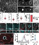 Fig. 2: Macropinocytosis is associated with tissue crowding and low levels of tension. a Image of Xenopus stained with phalloidin (white) at ST34 (left) and ST42 (right, asterisk highlight actin ruffles). Scale bar 10 μm. b Quantification of cell density (blue; right axis) and macropinocytotic events (MP, red; left axis) at ST34 and ST42 (n = 3 exp. and 15 embryos per stage for cell density, p-value = 3.43e-10; 4 exp. and 6 embryos for macropinocytotic events at ST34 and 5 exp. and 16 embryos at ST42, p-value = 0.0282). c Quantification of cell density (blue; right axis) and macropinocytotic events (red; left axis) in embryo treated or not with Roscovitine for 24 h (n = 4 exp. and 18 control embryos and 21 Roscovitine-treated embryos for MP events, p-value = 0.0019; 3 exp. and 29 control embryos and 28 Roscovitine-treated embryos for goblet cell density, p-value = 0.0045). d Representation of the generation of 3D organoids or 2D explant plated onto fibronectin coated coverslip. Adapted from61,62. e Representative images of the surface of 2D explant (left) or 3D organoids (right) expressing Lifeact-FP. Scale bar 30 μm. f Quantification of cell density (blue; right axis) and macropinocytosis (red; left axis) in 2D explants or 3D organoids (n = 6 experiments with 22 explants and 23 organoids; MP p-value = 2.00e-06 and density p-value = 5.97e-07). g Image of actin ruffles (asterisk) in the epithelium of an embryo expressing Lifeact-FP before (up) and after (down) treatment with GsMTx4. Scale bar 30 μm. h Quantification of the fold difference in macropinocytosis level between 1 h before and 1 h after treatment with DMSO (mock treatment, n = 9 embryo), GsMTx4 (n = 5 embryo; p-value = 2.03e-06), NaDeoxy (n = 5 embryo; p-value = 0.0012), Mβ Cyclodextrin (n = 11 embryo; p-value = 0.0260), or Yoda1 (n = 5 embryo; p-value 3.00e-05). All tests are two-sided unpaired t-tests. Source data are provided as a Source Data file.