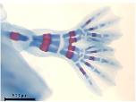 Supplementary Figure 4: Ectopic hindlimb skeletal staining. Individual from Figure 4C, stage NF55). There is a single femur, two fibulae and one central tibia, four tarsal bones and two complete hindfeet, with the two copies of digit 1 (hallux) adjacent. Viewed from the dorsal side